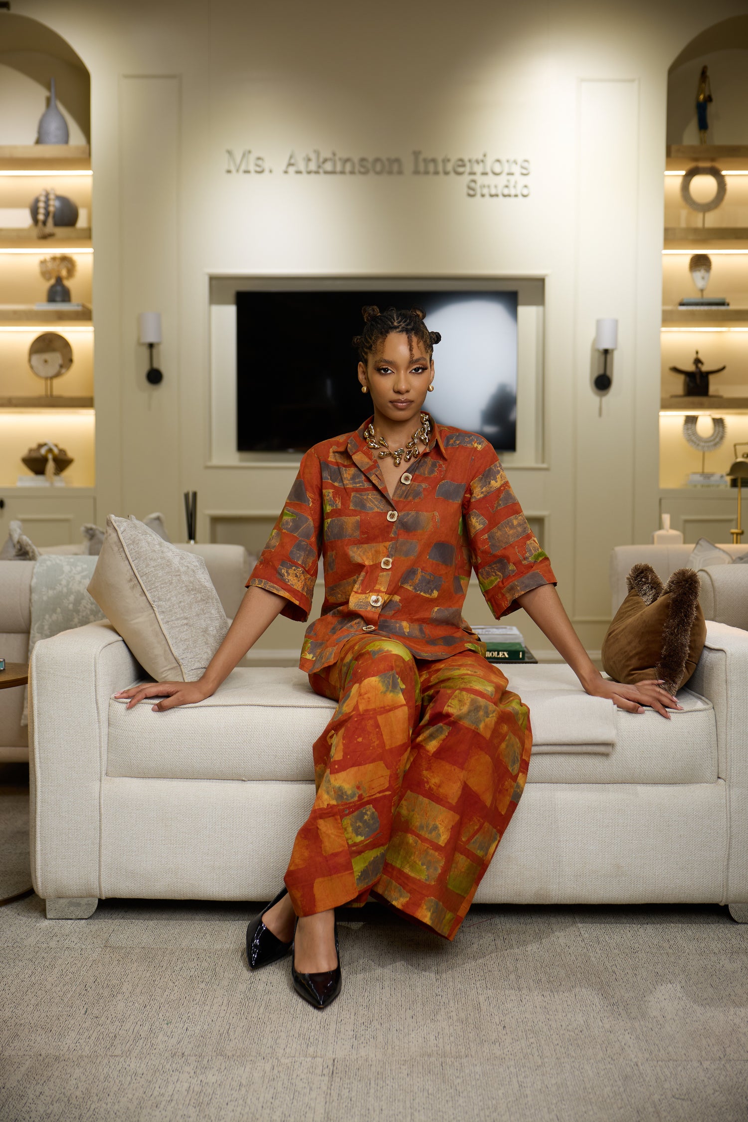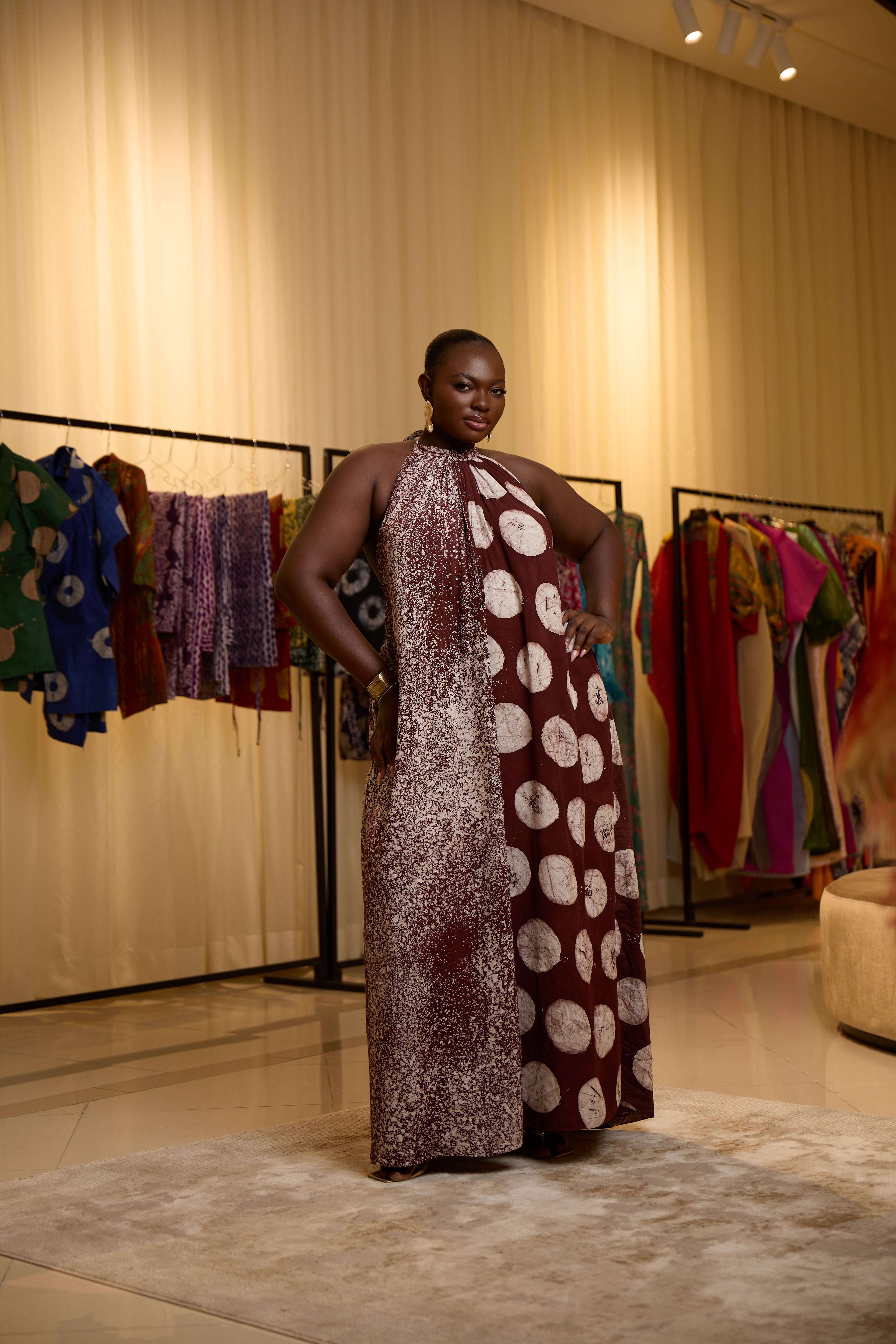 Aura is the quiet power of how you are perceived before you say anything. This collection is called Aura because the pieces are designed to give presence — the kind that is felt, not announced. The silhouettes, movement of the fabric, and bold yet balanced patterns create a confidence that shows up naturally. You don’t wear Aura to be loud; you wear it to be felt.
